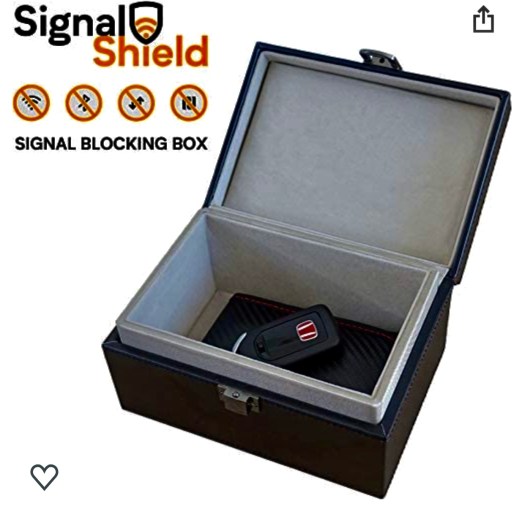 A metal box/tin or metal lined pouch, also known as a Faraday Cage or pouch, protects keyless ignition keys when they are placed inside as the signal from the key cannot be intercepted by unlawful devices near the property.